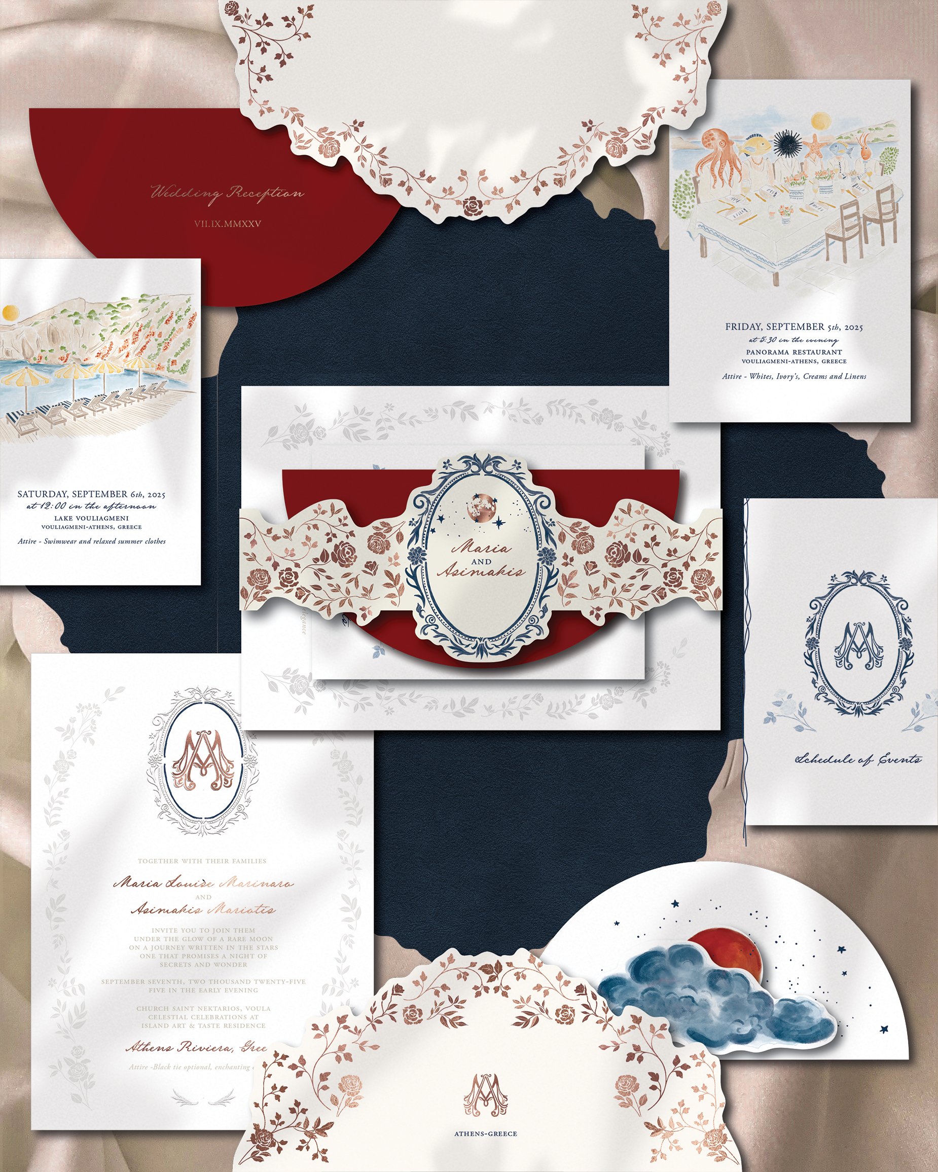 Anna Maria was the designer for our wedding and worked with us for 9+ months to make sure everything looked perfect and cohesive, from the save the dates to the invites and all day of designs (cocktail menu, gift box, welcome bag). She immediately understood our tastes and preferences and we trusted that all new designs could fit the exact aesthetic we needed. Plus, she provided writing for our designs in two languages (Greek and English) and helped us make sure wording and font was helpful for all of our guests. Would highly recommend her as a partner for your event!