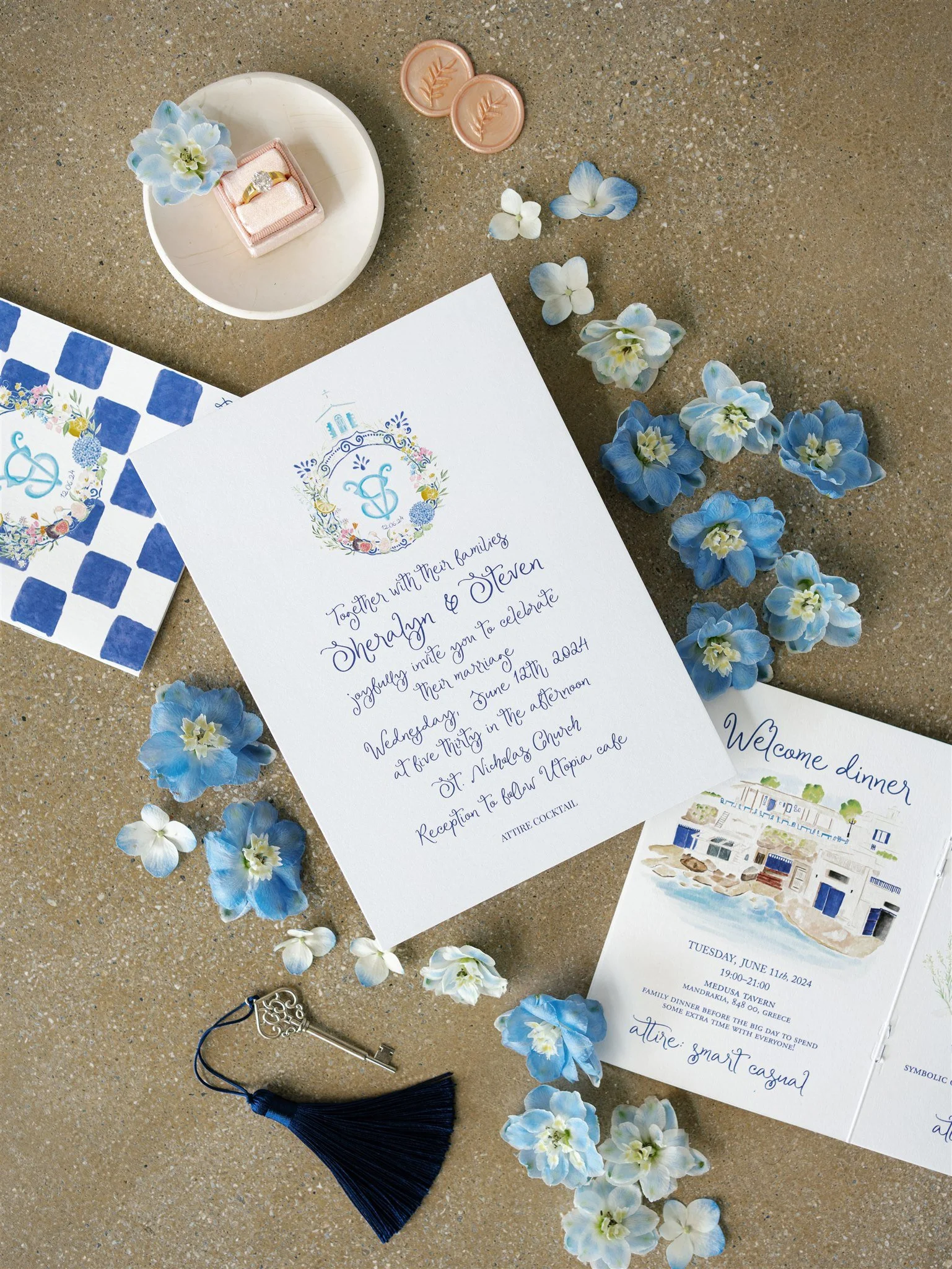 Thank you so much Anna Maria for the beautiful wedding stationary you produced for our wedding. From the design of our logo to the wedding invitations, to the name tags, to the menus, etc. everything was so beautiful! Thank you also for your patience and for doing many iterations and creative proposals. Anna Maria is super talented and makes sure every little detail is perfect. We highly recommend her!